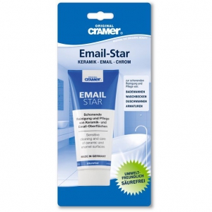 Большинство средств для очистки ванн содержат сильные кислоты, необходимые для удаления известковых отложений. Но поскольку обычная сантехническая эмаль не является кислотоустойчивой на протяжении длительного времени, при постоянном применении таких средств появляются проблемы: поверхность становится матовой, эмаль повреждается! Email-Star восстанавливает цвет, устраняет известковый налет и сильные загрязнения, не разъедая поверхность. Эффективность средства связана с использованием комбинации определенных поверхностно-активных веществ и полирующего компонента, подобранного с учетом твердости керамики и эмали. Паста не раздражает кожу, не содержит кислот и является экологически чистой. Для постоянной бережной очистки и ухода — чтобы надолго сохранить внешний вид вашей сантехники.