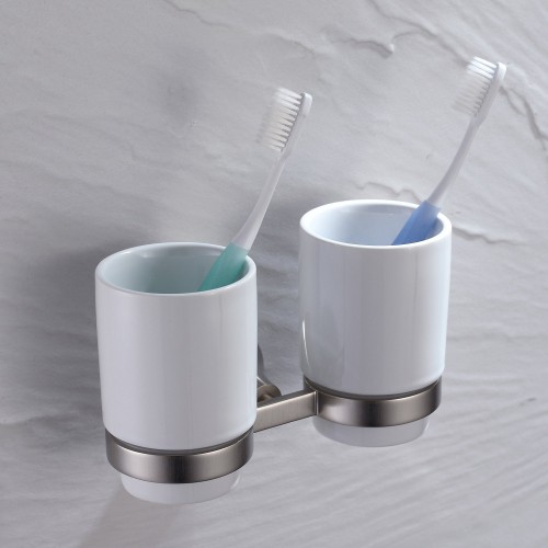 - Украсьте ванную комнату парой керамических стаканов с настенным держателем стаканов Kraus