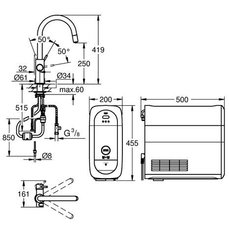 - GROHE Blue Home однорычажный смеситель для мойки с функцией очистки водопроводной воды