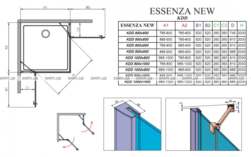 Серия кабин Essenza создавалась с мыслью о клиентах, предпочитающих минималистические кубические формы. Легкость конструкции удалось получить благодаря соединению больших листов стекла и хромированных петель. Вход в кабину, широкий и удобный. Петли оснащены подъемно-опускным механизмом. Конструкция петли и пристенных профилей позволяет легко открывать и закрывать двери, а также избежать повреждений алюминиевого порога. Стекло имеет в стандарте покрытие Easy Clean, которое предотвращает осаждение камня и других загрязнений на стекле и облегчает ежедневный уход за кабиной. Герметичность кабины обеспечивают магнитные уплотнители на дверях и эластичные уплотнители между дверями и неподвижными частями кабины. Особое внимание стоит обратить на высоту кабины – 2000 мм. Благодаря этому кабины хорошо смотрятся на низких поддонах.