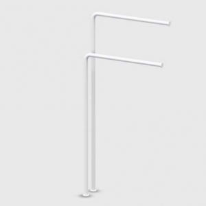 Nomad, створена за допомогою вишуканих матеріалів, є унікальною лінійкою аксесуарів для підлоги, які можна налаштувати. Він побудований з двох основних елементів, які можна комбінувати з його оздобленням: основа з натурального компактного каменю різної текстури та два набори аксесуарів, один з яких складається з двох вішак для рушників, а інший – з тримача туалетної папери з тримачем туалетної щітки.
