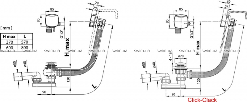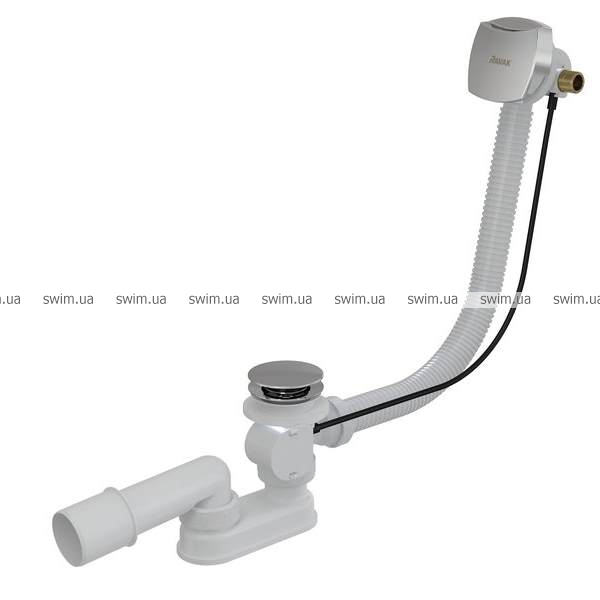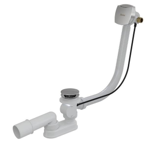 Вы можете выбрать сточный комплект для ванны с переливом длиной 570 мм или 800 мм с управлением сливом при помощи тросика или механизмом ClickClack. В состав каждого сточного комплекта входит сифон