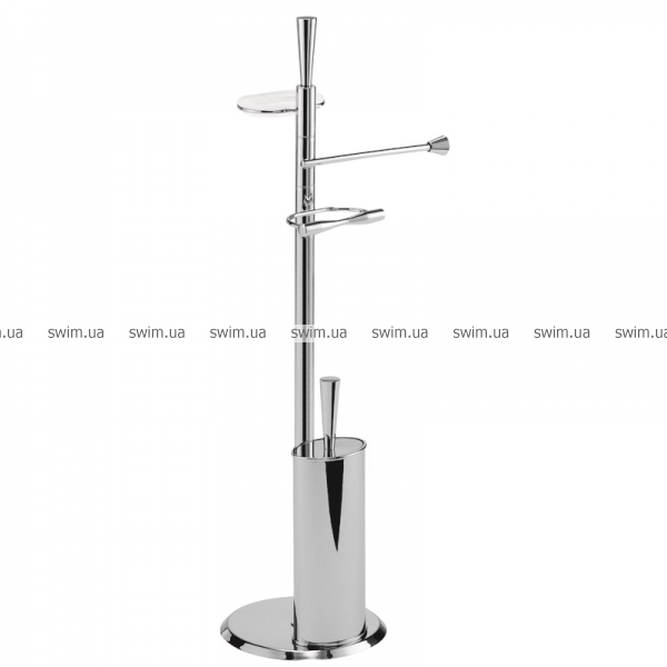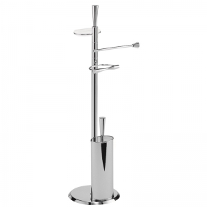 Стойка туалетная Colombo Design Isole B9413 комплектуется вешалкой для полотенец, бумагодержателем, ершиком для унитаза и мыльницей. Она изготовлена из высококачественного металла, который не боится влаги и не ржавеет. Ершик представляет собой съемную щетку с синтетическим ворсом и гладкую металлическую ручку с крышкой. Колба ершика имеет съемную внутреннею пластиковую емкость. Стеклянная емкость мыльницы надежно крепится в держателе. Сборка проста и не потребует специальных навыков. Размеры стойки невелики и ее можно будет удобно разместить в любой ванной комнате.