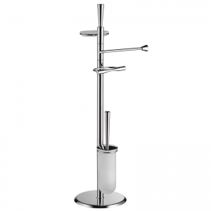 Стойка туалетная Colombo Design Isole B9418 комплектуется вешалкой для полотенец, бумагодержателем, ершиком для унитаза и мыльницей. Она изготовлена из высококачественного металла, который не боится влаги и не ржавеет. Ершик представляет собой съемную щетку с синтетическим ворсом и гладкую металлическую ручку с крышкой. Колба ершика выполнена из матового белого стекла. Стеклянная емкость мыльницы надежно крепится в держателе. Сборка проста и не потребует специальных навыков. Размеры стойки невелики и ее можно будет удобно разместить в любой ванной комнате.