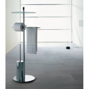 Стойка туалетная Colombo Design Planets B9808 комплектуется подставкой под аксессуары, вешалкой для полотенец, бумагодержателем и ершиком. Она изготовлена из высококачественного металла, который не боится влаги и не ржавеет. Ершик представляет собой съемную щетку с синтетическим ворсом и гладкую металлическую ручку с крышкой. Колба ершика имеет съемную внутреннею пластиковую емкость. Сборка проста и не потребует специальных навыков. Размеры стойки невелики и ее можно будет удобно разместить в любой ванной комнате.