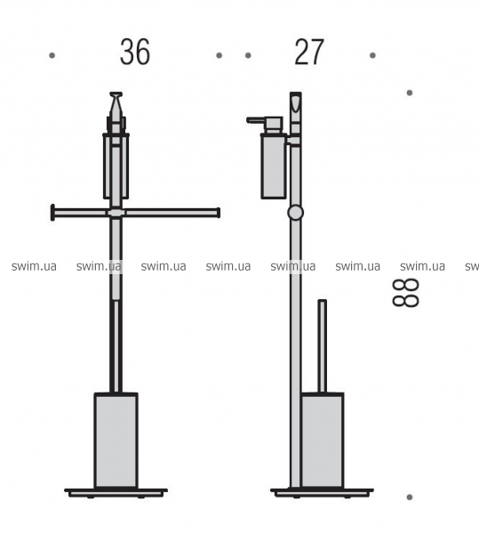 Стойка туалетная Colombo Design Planets B9819 комплектуется дозатором жидкого мыла, вешалкой для полотенец, бумагодержателем и туалетным ершиком. Она изготовлена из высококачественного металла, который не боится влаги и не ржавеет. Ершик представляет собой съемную щетку с синтетическим ворсом и гладкую металлическую ручку с крышкой. Колба ершика имеет съемную внутреннею пластиковую емкость. Дозатор имеет надежный механизм с длительным сроком эксплуатации. Сборка проста и не потребует специальных навыков. Размеры стойки невелики и ее можно будет удобно разместить в любой ванной комнате.