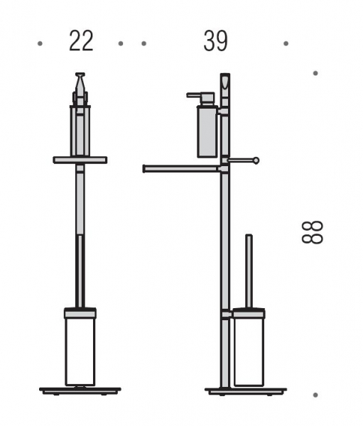 Стойка туалетная Colombo Design Planets комплектуется дозатором жидкого мыла, вешалкой для полотенец бумагодержателем и ершиком. Она изготовлена из высококачественного металла, который не боится влаги и не ржавеет. Ершик представляет собой съемную щетку с синтетическим ворсом и гладкую металлическую ручку с крышкой. Матовая стеклянная колба ершика надежно крепится в держателе. Дозатор имеет надежный механизм с длительным сроком эксплуатации. Сборка проста и не потребует специальных навыков. Размеры стойки невелики и ее можно будет удобно разместить в любой ванной комнате.