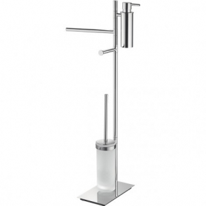 Стойка туалетная Colombo Design Square B9918 комплектуется дозатором жидкого мыла, вешалкой для полотенец, бумагодержателем и ершиком. Она изготовлена из высококачественного металла, который не боится влаги и не ржавеет. Ершик представляет собой съемную щетку с синтетическим ворсом и гладкую металлическую ручку с крышкой. Дозатор жидкого мыла надежно крепится в держателе. Сборка проста и не потребует специальных навыков. Размеры стойки невелики и ее можно будет удобно разместить в любой ванной комнате.