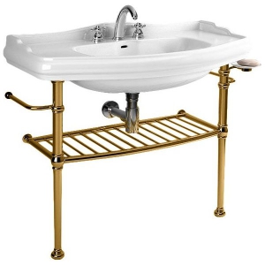 - Структура из латуни с коническими ножками и решётчатой полкой для умывальника 100 см