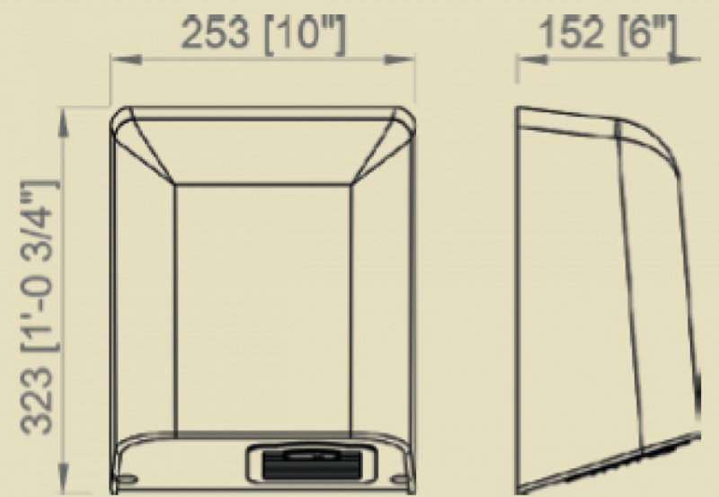 Широкие отверстия позволяют достичь скорости потока в 18 м/с, повторяют контуры ваших рук и удаляют с них воду быстрее. Корпус имеет небольшие габариты - 325х250х153 — и не займет много места в санитарной комнате.