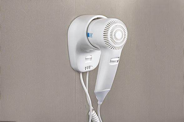 Устройство легко устанавливается на стену. В комплекте поставляется монтажный набор и инструкция на русском языке, благодаря которым установка фена пройдет быстро и просто. Фен может быть подключен к открытой или скрытой проводке в вашей гостинице, для быстрого подключения к открытой проводке сушилка для волос поставляется в комплекте со стандартной электрической вилкой.