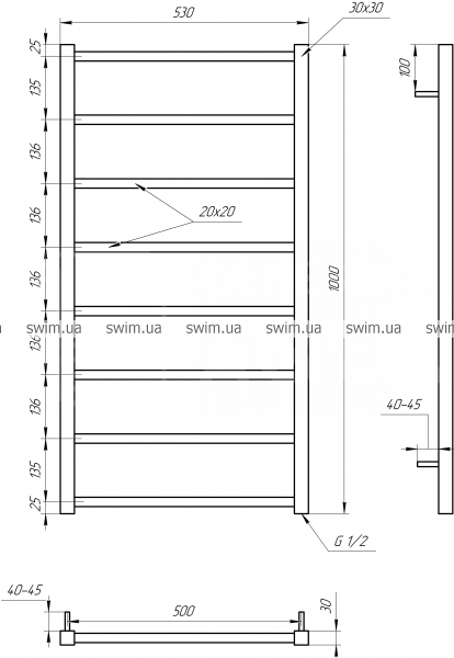 → Сушка для рушників електричний Genesis Aqua Terra 1000х500 мм