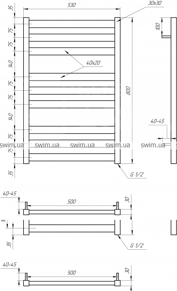 → Сушка для рушників електричний Genesis Aqua Tristar flat 800х530 мм
