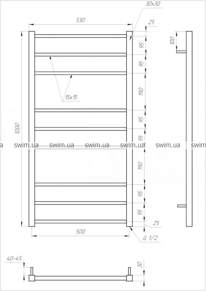 → Сушка для рушників електричний Genesis Aqua Tristar square 1000x530 мм