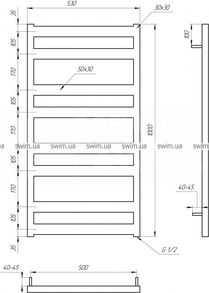 → Сушка для рушників водяний Genesis Aqua Fom 1000х530 мм