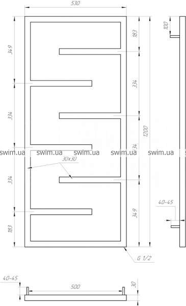 → Сушка для рушників водяний Genesis Aqua Infinite 1200x530 мм