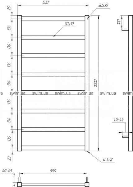 Сушка для рушників водяний Genesis Aqua Lono 1000х530 мм