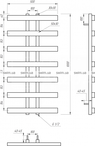 Сушка для рушників водяний Genesis Aqua Symmetry 1000х500 мм
