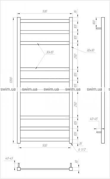 → Сушка для рушників водяний Genesis Aqua Tristar 1200х530 мм