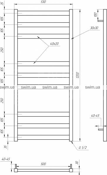 → Сушка для рушників водяний Genesis Aqua Tristar flat 1200х530 мм