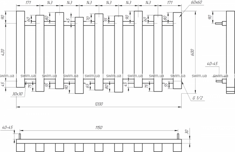 Сушка для рушників водяний Genesis Aqua Wave 600х1200 мм