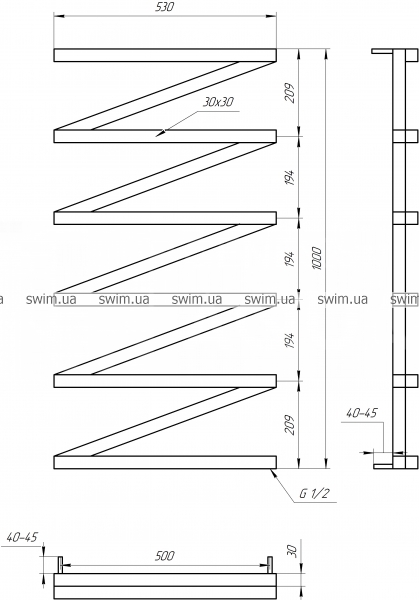 → Сушка для рушників водяний Genesis Aqua ZigZag 1000х530 мм
