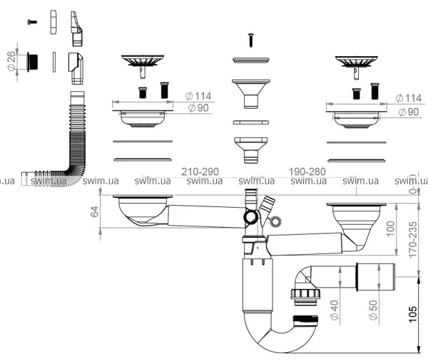 → Сифон для мийки Fancy Marble Prevex 00011FM подвійний