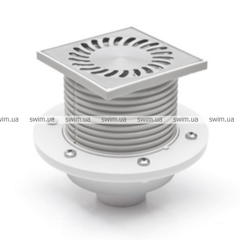 срок службы. Внутренний наклон решетки повышает пропускную способность трапа и ускоряет сбор воды с поверхности пола.
