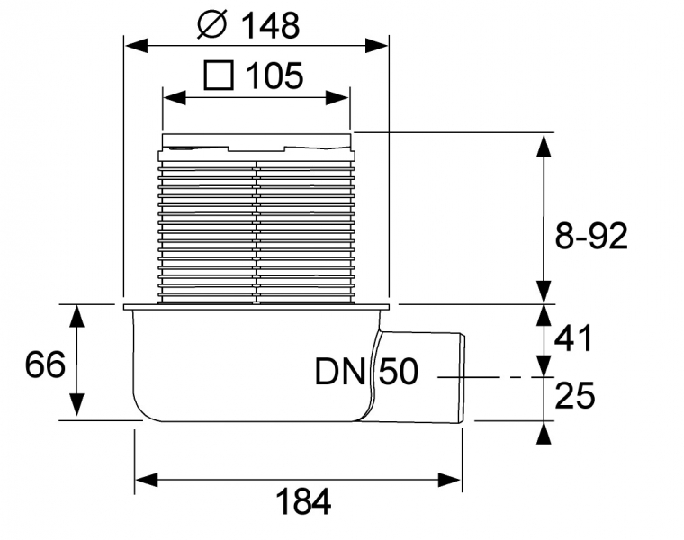 - корпус трапа пластиковый (РР) с горизонтальным отводом DN50