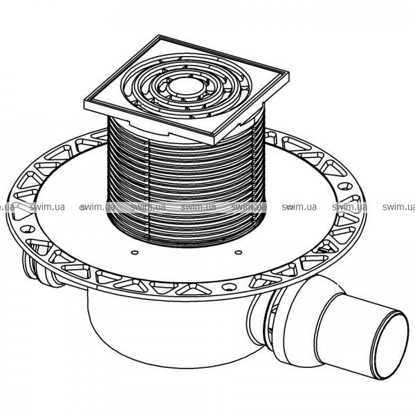 - верхняя вставка из ABS с декоративной решеткой из полированной нержавеющей стали 100х100 мм и уплотнительным резиновым кольцом
