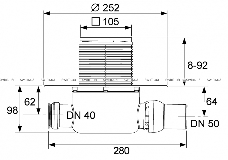 - Высота гидрозатвора – 50 мм, согласно DIN EN 1253