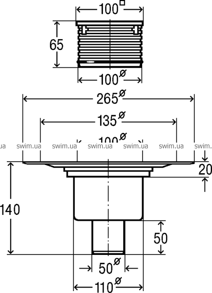 - Поворотная и регулируемая по высоте насадка 100x100 мм