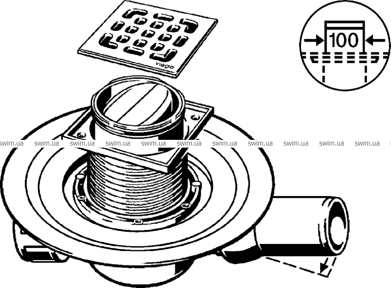 - Пропускная способность при высоте подпора 20 мм (в соответствии с DIN EN 1253) 0,4 л/с