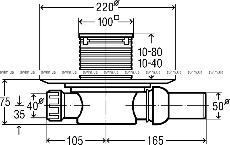 - Пропускная способность при высоте подпора 10 мм (в соответствии с DIN EN 1253) 0,33 л/с