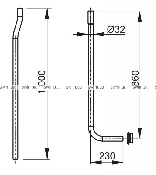 Водосливная труба Ø32 мм, состоящая из двух частей + прокладка гофрированная