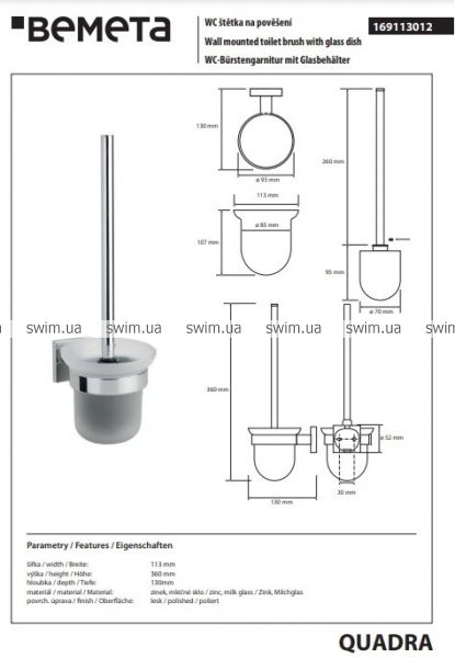 Туалетна щітка з тримачем Bemeta Quadra 169113012