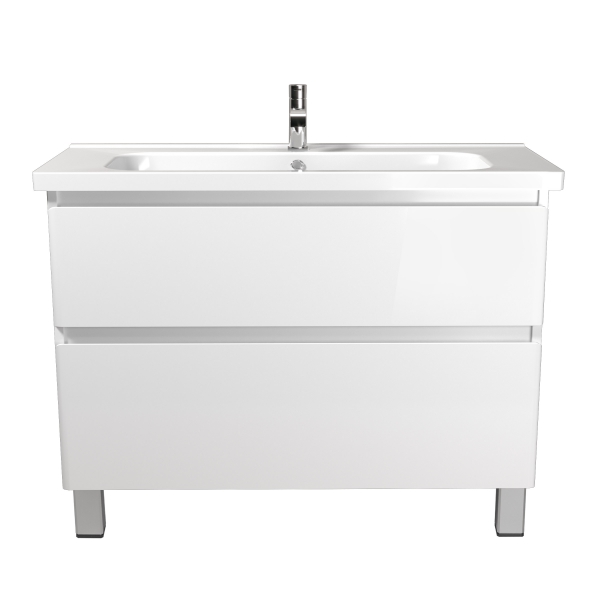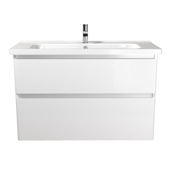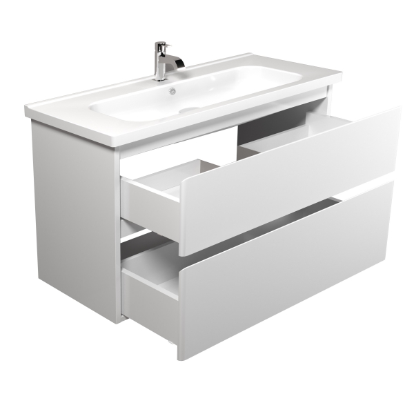 Ця модель оснащена двома ящиками і комплектується порцеляновим умивальником Creavit Ideal шириною 100 см. Нижня глибока скринька може використовуватися для зберігання пляшок і банок у вертикальному положенні. Верхня скринька призначена для зберігання дрібних речей щоденного використання.