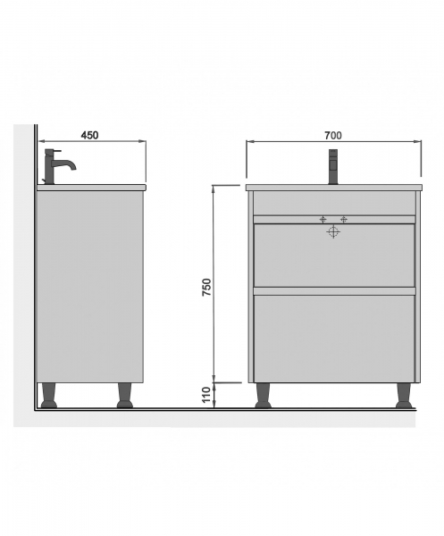 Тумба Мойдодыр Prime-70-U з умивальником COSMO-70