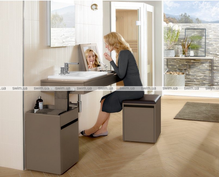 Серия мебели Vivia идеально соответствует вашим потребностям. Теперь вы сможете пользоваться мебельной консолью с откидным зеркалом и выдвигаемыми ящиками для принадлежностей, не вставая с места. Табурет на колесах с выдвижным ящиком — удобное сидение, которое потом можно просто задвинуть под консоль. Различные модули тумбы обеспечивают удобство хранения и порядок в ванной комнате. Чтобы все необходимое можно было легко охватить взглядом, зеркальный шкаф My View 14+ снабжен системой выбора цвета подсветки и степени ее интенсивности. Место, идеально приспособленное для того, чтобы нанести макияж, побриться или просто расслабиться.