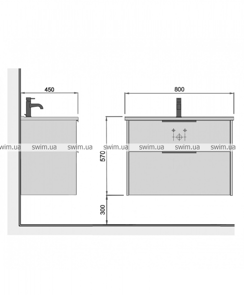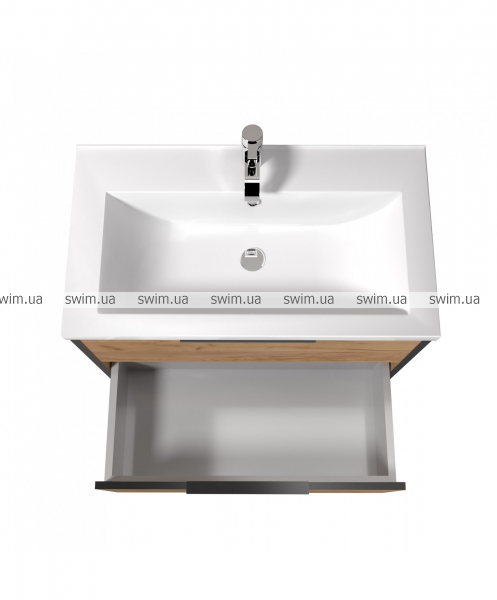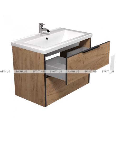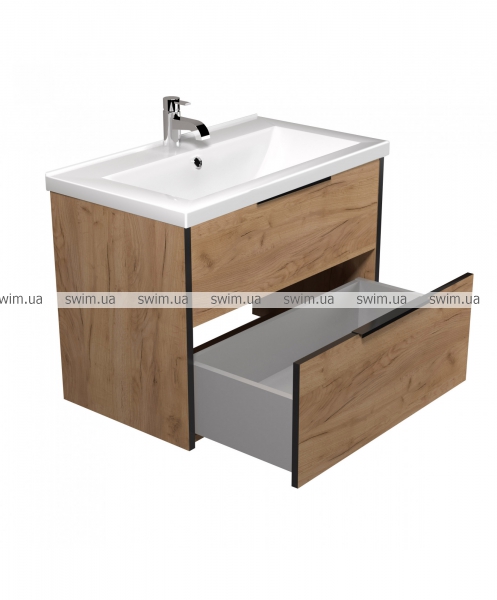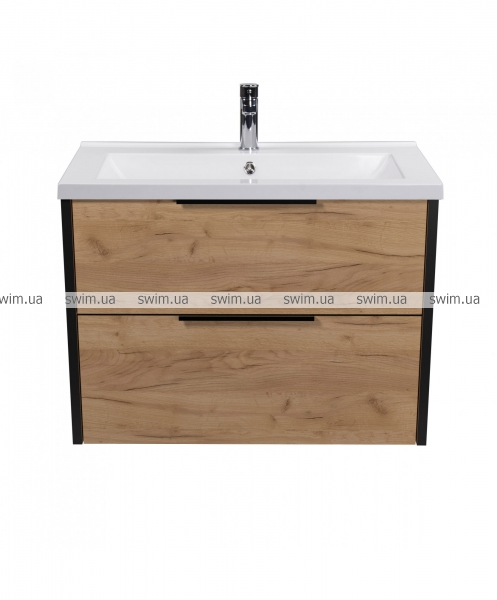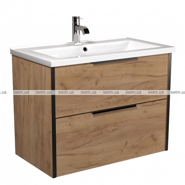 → Тумба підвісна Мойдодир Line Craft 80 з умивальником Cosmo 80 дуб крафт/чорна