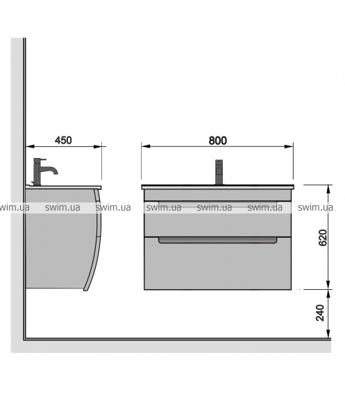 Тумба підвісна Мойдодир TREND-80-A з умивальником Creavit Su-80 біла