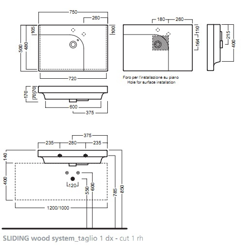 → Тумба под накладной умывальник Hatria Sliding Cut 3 Right 120 см