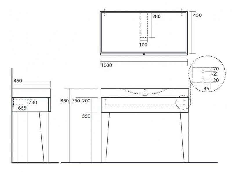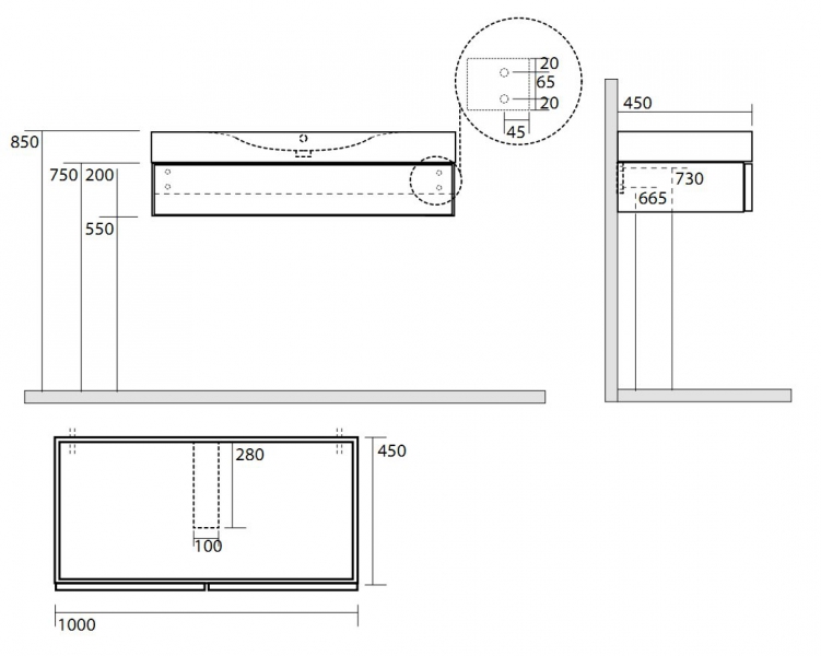 - Размер: 1000х450х200 мм
