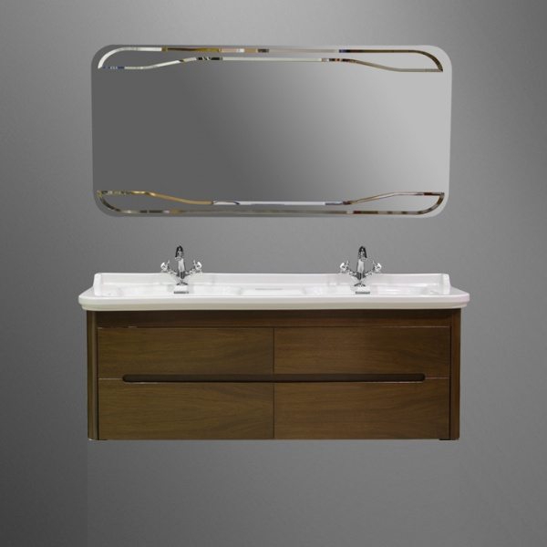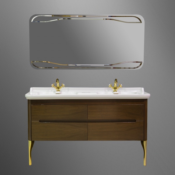 - Лакированная подвесная мебель из дерева для умывальника 150 см