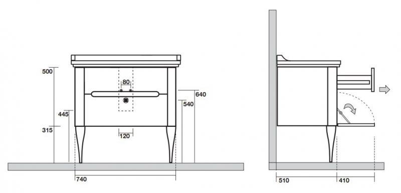 • Размер тумбы с ножками (ВхШхГ): 815х740х510 мм