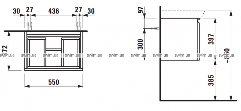 - Шкафчик под раковину со скрытым сифоном, для раковины Laufen pro 8.1095.6