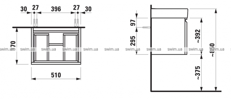 - Шкафчик под раковину со скрытым сифоном, для раковины Laufen pro 8.1895.8