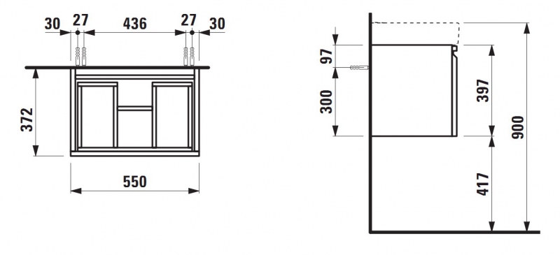 • Шкафчик под раковину со скрытым сифоном, для раковины Laufen pro 8.1895.9