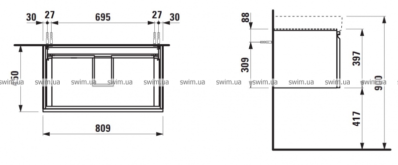 - Шкафчик под раковину со скрытым сифоном, для раковины Laufen pro 8.1396.5