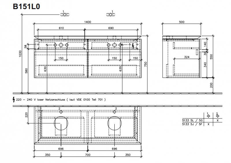 Тумба под умывальник Villeroy&Boch Legato B151L0XX